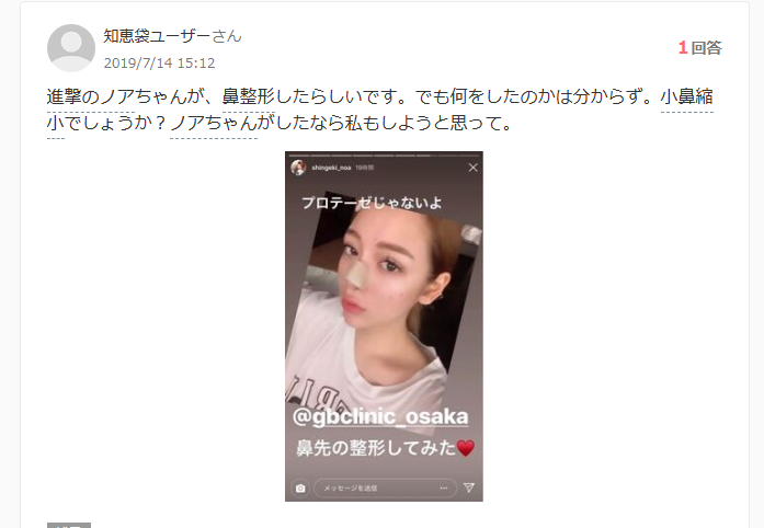 また、2019年に鼻の整形をしたことを報告しているという声も見られています。